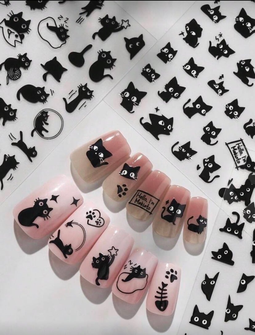 指先を可愛く飾る、キュートな黒猫ちゃんの5Dネイルシール✨