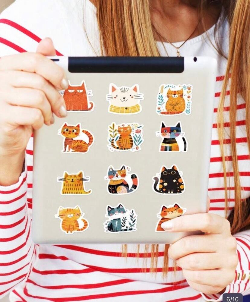 デスクやノート、スマホに貼って楽しめる、ユニークな漫画猫ステッカーが登場です!
